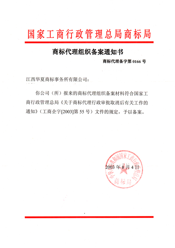 江西华夏商标事务所有限公司是我国商标代理制度改革后,经江西省工商局批准本省成立较早的商标代理及其他知识产权代理的专业服务机构,在国家工商行政管理总局商标局核准备案(商标代理字第0166号),本公司拥有一批专业从事商标代理及其他知识产权代理的专业代理人,随时为客户提供各种商标业务的咨询服务。为了更好的为高端客户服务,公司聘请多名工商系统精通商标业务的退休老同志,做高端业务顾问,遇到疑难总能找到良好的解决问题的方案。我所始终以“诚实守信、高效服务”为宗旨,本公司真诚希望在知识产权领域为广大客户提供最优质的服务。目前公司已经与国内多家优秀的商标代理机构建立了良好的合作关系。